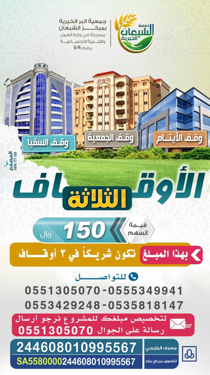 ب 150 ريال فقط تكون شريكاً في ثلاث اوقاف