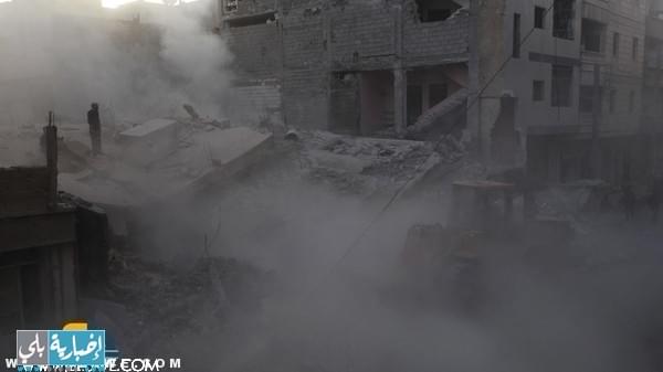 وشنّ الطيران الحربي 13 غارة جوية على مدينة داريا بريف دمشق وعدة غارات جوية على عربين وزملكا بالغوطة الشرقية.