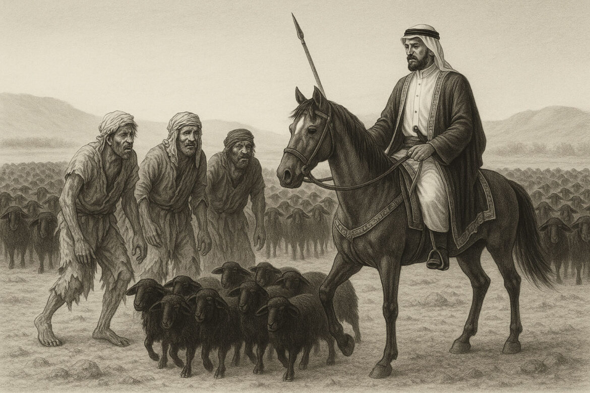 حمود السرحاني في هالوقت كان راجع هو وربعه من مغزى مناكيف ومروا في قلعة الاخضر التركية ليتزودوا بالماء مروا آمر القلعة وكان وقتها يتصل مع آمر قلعة المعظم، قال له حمود السرحاني : انشده شاف حوله احد؟ قال له آمرقلعة المعظم يقول فيه ناس معهم حلال كثير متجهين جهتكم.. قال حمود السراحين ياربعي نبغى نشوف من الناس هذي اكيد غزوا ماخذين حلال من ناس..وقعدوا لهم بالطريق لما اقبلوا عليهم طلعو ا عليم وقال لهم حمود السرحاني نزلوا سلاحكم وأخذ سلاحهم وركايبهم وشاف وسم الغنم وهو يعرف الوسم ان هذي غنم سلمى الجريسية…ورجع لها حلالها وهي نخت حمود وهو مايسمعها ولكن الله قدر انه يصادف من أخذ حلالها ..